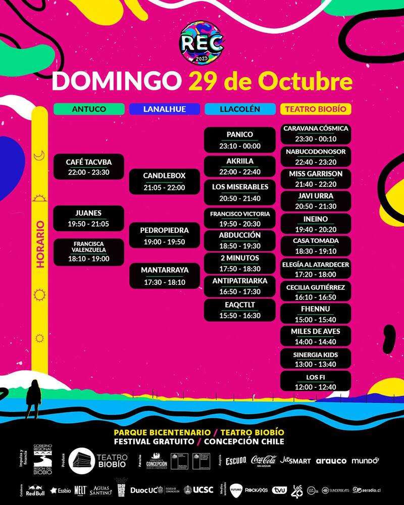 Esta es la reprogramación de artistas del festival REC 2023 para la jornada del domingo 29 de octubre.