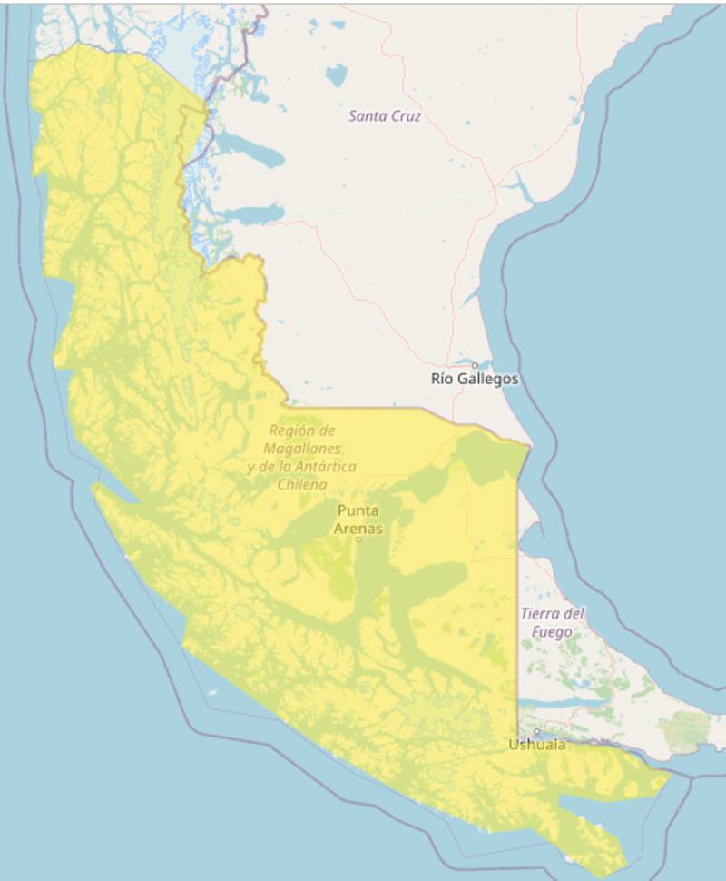 El segundo aviso se dio para la Región de Magallanes, la cual iniciará en la mañana del martes 24 y terminará en la misma noche. De igual forma abarcará toda la zona.