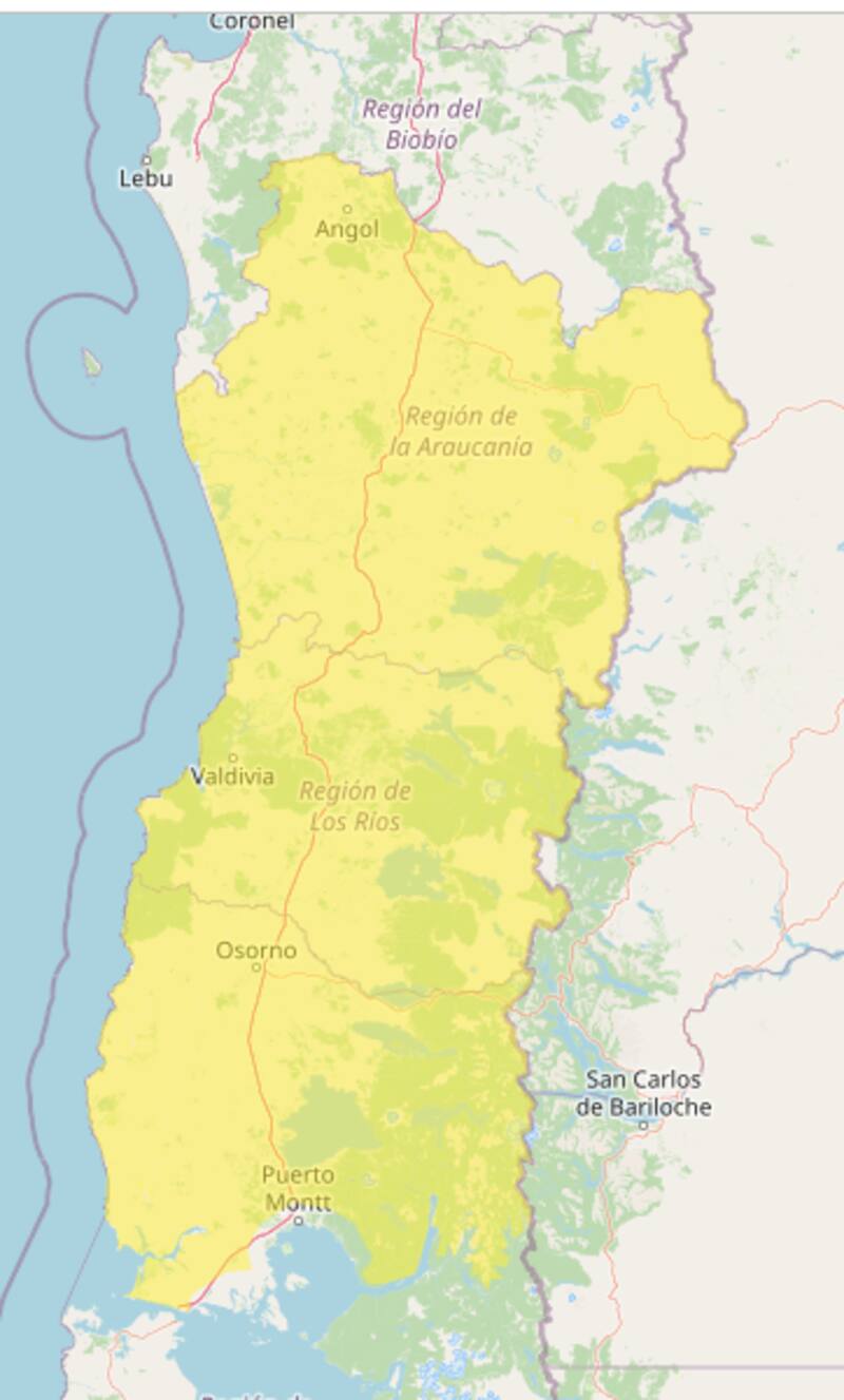 La DMC emitió una aviso por probables tormentas eléctricas para las regiones de Araucanía, Los Lagos y Los Ríos, la cual comenzará la noche de este lunes y finalizará en la madrugada del martes 24 de enero. Esta abarca todas estas zonas, desde la cordillera hasta la costa.