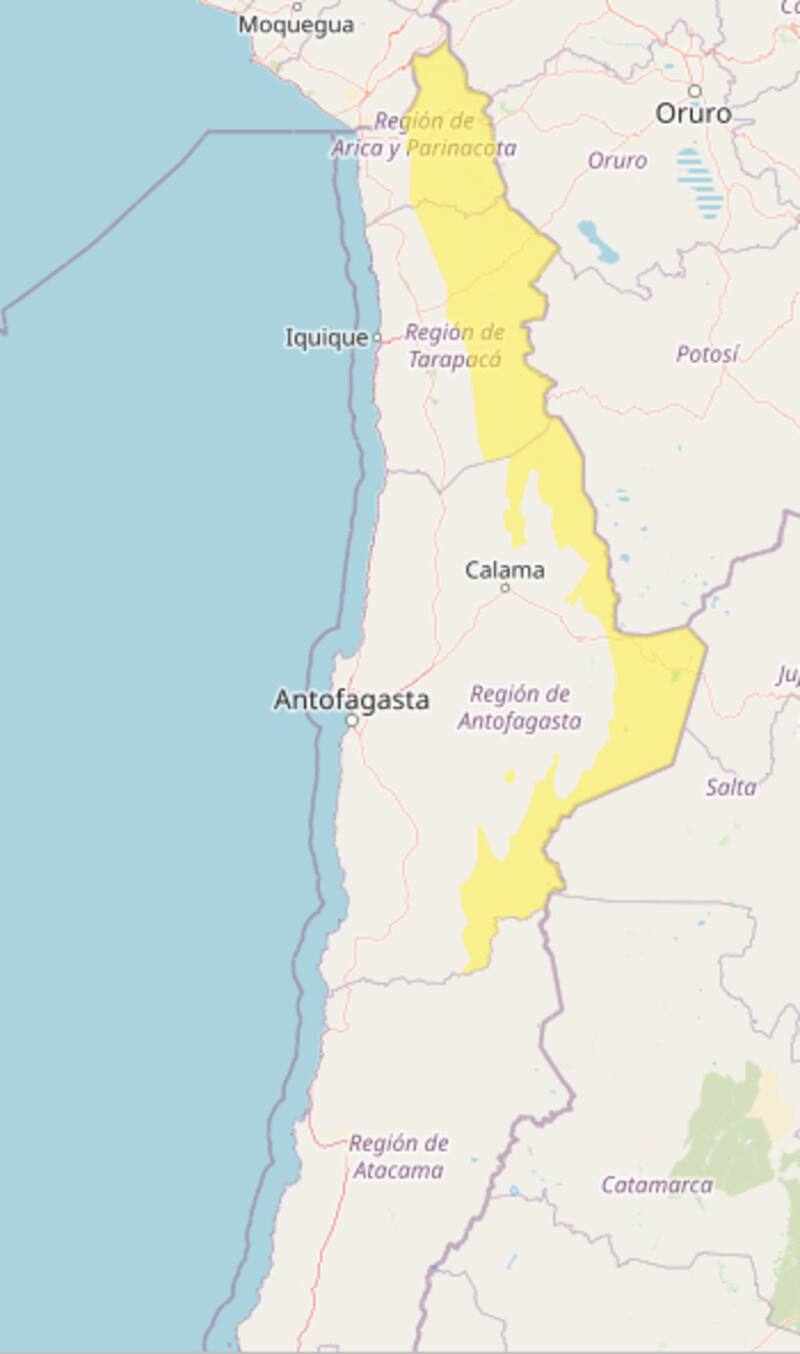 Por los datos entregados de la DMC, el Servicio Nacional de Prevención y Respuesta ante Desastres (Senapred), declaró Alerta Temprana Preventiva para la provincia del Tamarugal, en la Región de Tarapacá, además de actualizar la alerta para la comuna de Antofagasta y Taltal, y la provincia de Loa.