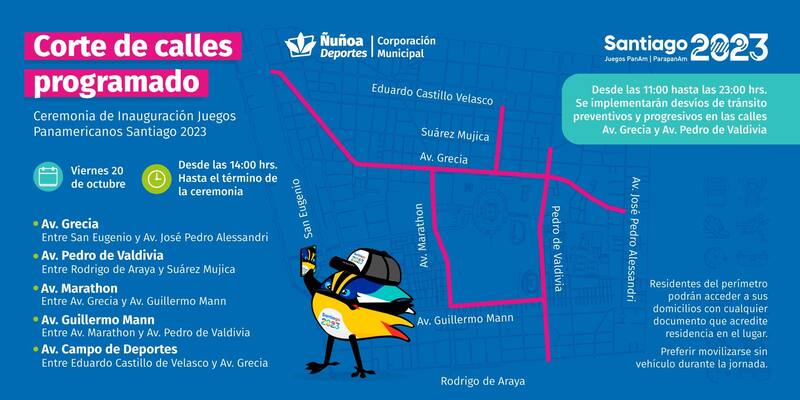 Este viernes se realizará una serie de cortes de calles, con motivo de la Ceremonia de Inauguración de los Juegos Panamericanos y Parapanamericanos Santiago 2023.
