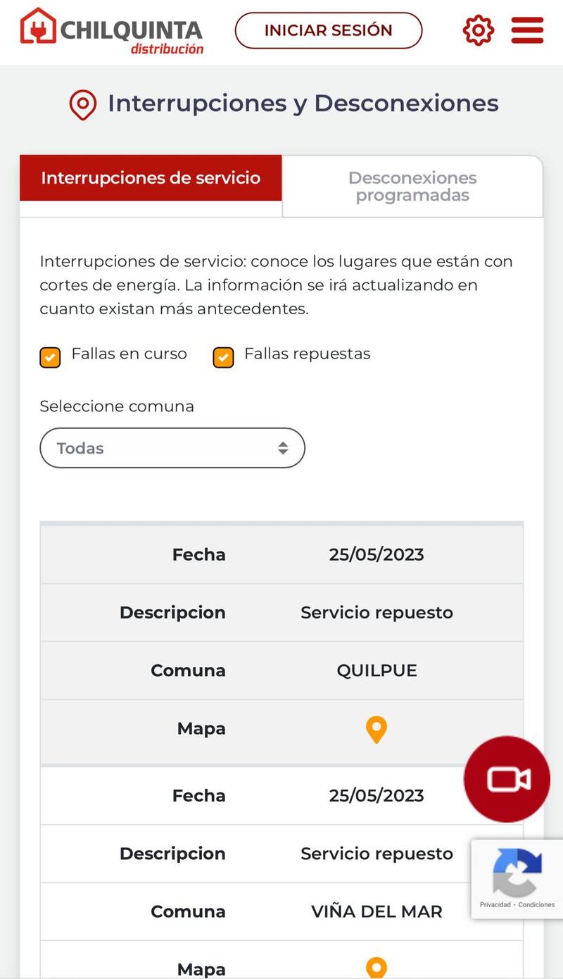 Chilquinta en Valparaíso: informa sobre interrupciones del servicio de energía, actualizando cuando existen antecedentes de los hechos.