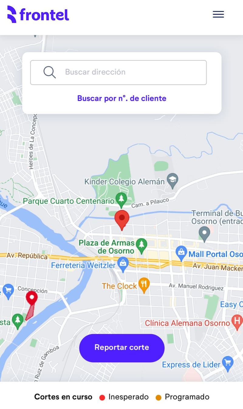 Frontel para la zona sur: cuentan con un mapa en el que se pueden encontrar cortes en curso, inesperados y programados. Revisa el enlace a continuación: