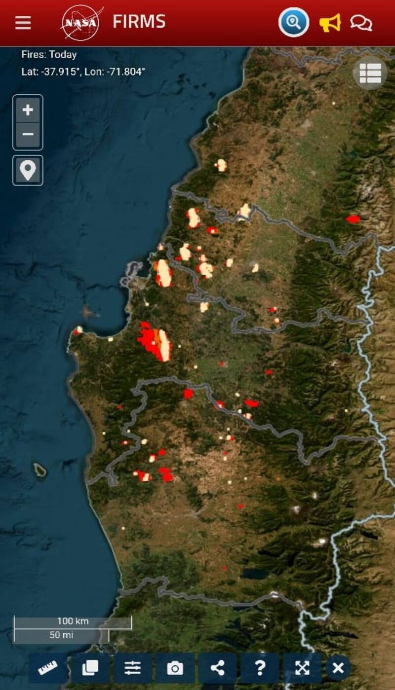 Esta aplicación ofrece un mapa a través de imágenes satelitales, donde también cuenta con una herramienta para visualizar incendios y fuentes de calor.