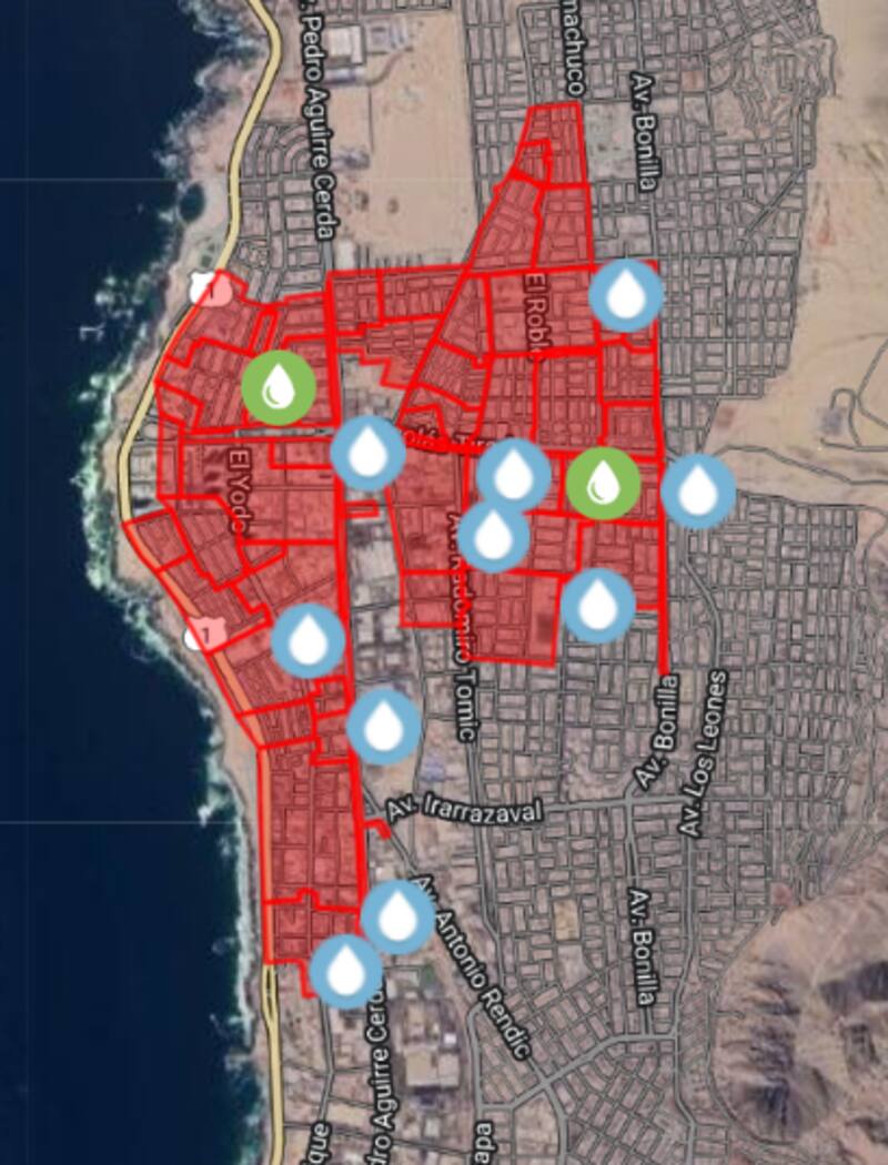 Son 47 los puntos de abastecimiento de agua potable en Antofagasta, que se encuentran en las siguientes zonas:
