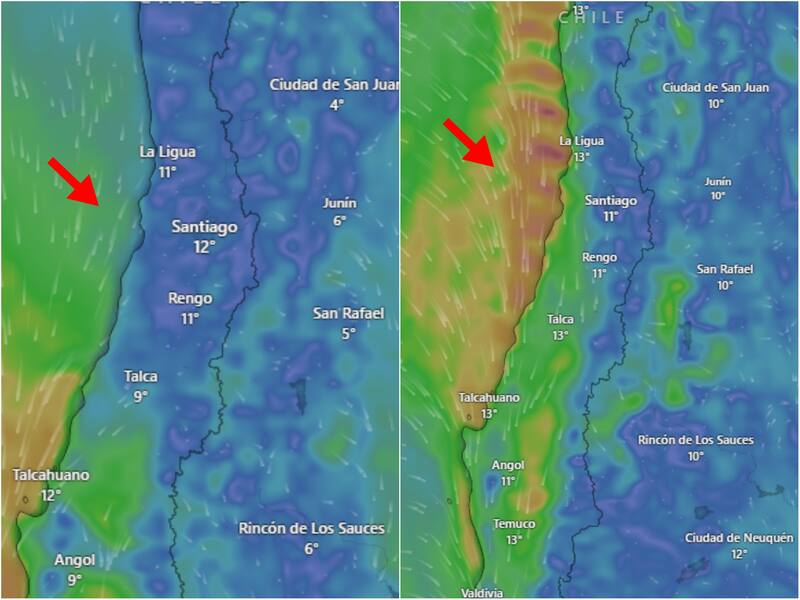 Todo esto se puede ver en vivo en el sitio web o aplicación de Windy, una plataforma de meteorología gratuita que muestra el clima y la fuerza y sentido del viento, un elemento clave para seguir el ciclón que llegó a Chile.