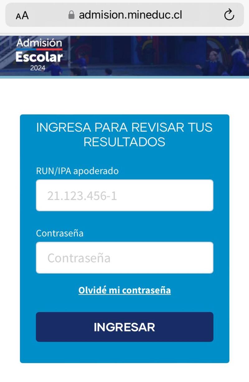 Los resultados de las listas de espera al Sistema de Admisión Escolar 2024 están disponibles en la página del Mineduc, en donde se debe ingresar el RUN o Identificador Provisorio del Apoderado y contraseña.