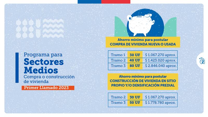 - Tramo 2 requiere un ahorro de 30 UF ($1.067.270 aprox.)