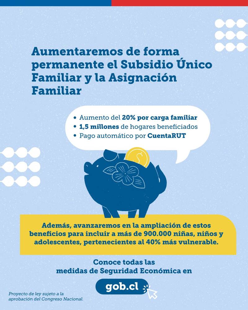 El anuncio del Gobierno también plantea que el Subsidio Único Familiar mejore su alcance durante el año, llegando a menores que hasta el momento no lo reciben.