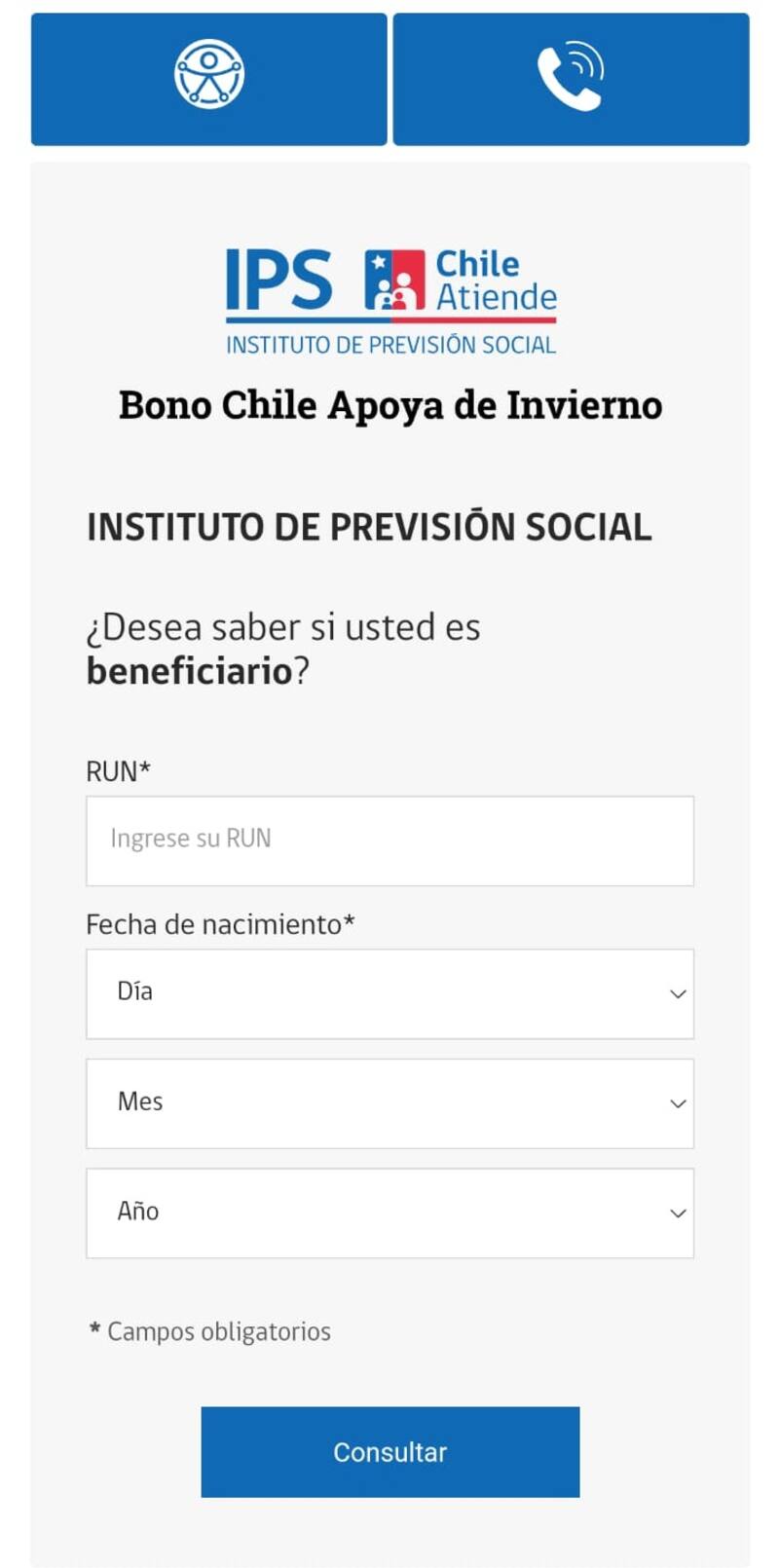 Para revisar pagos pendientes es necesario entrar al sitio de consulta del Bono Chile Apoya de Invierno e ingresar el RUN y la fecha de nacimiento.