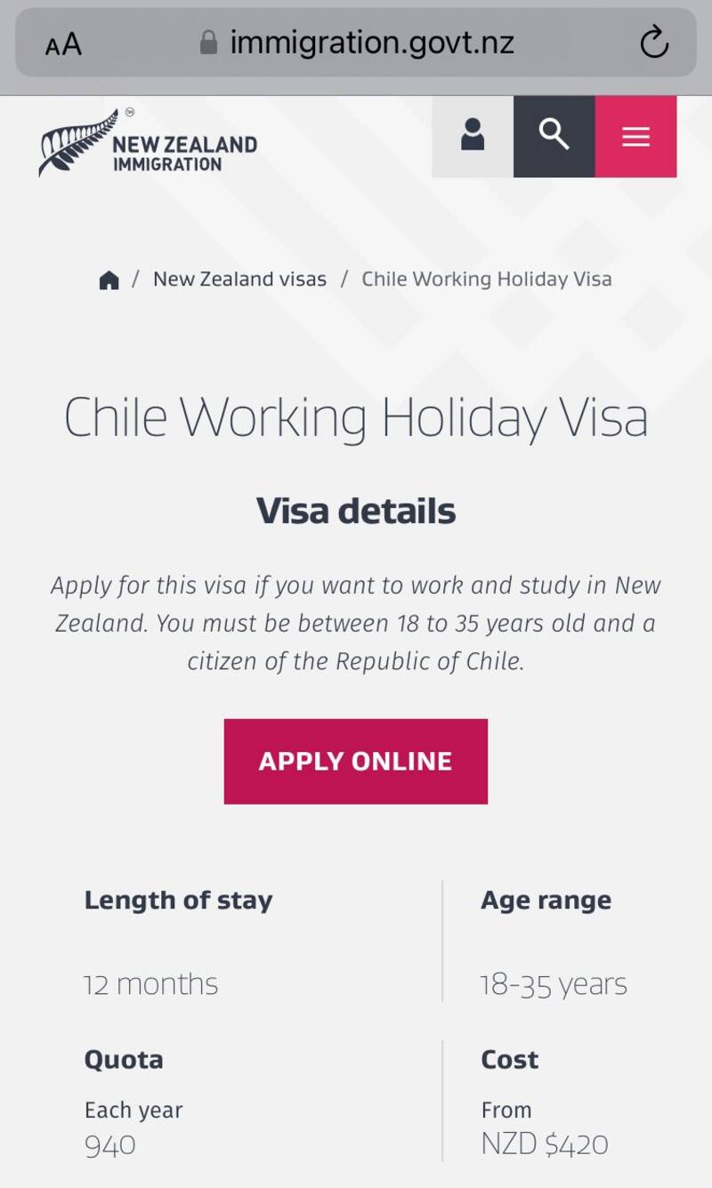 - No haber recibido la Working Holiday a Nueva Zelanda previamente.