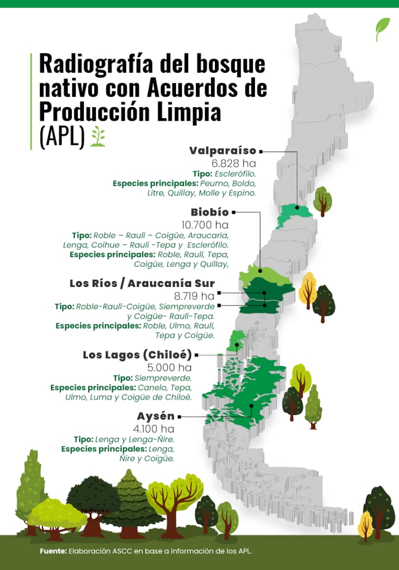 En esta línea, la Agencia de Sustentabilidad y Cambio Climático de Corfo (ASCC) y la Corporación Nacional Forestal (CONAF) impulsan los Acuerdos de Producción Limpia (APL) de Bosque Nativo, una iniciativa que promueve el manejo forestal sostenible mediante la incorporación del Manejo con Ordenación Forestal y una planificación de largo plazo que permite compatibilizar productividad, conservación y prevención de riesgos ambientales.
