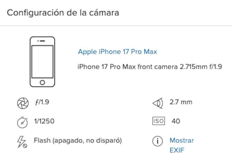 Según se ve en los metadatos de las fotos, colgadas en la cuenta oficial de la NASA en Flickr, las tres imágenes que acompañan esta nota fueron tomadas con la cámara frontal (o selfie) del iPhone 17 Pro Max, aunque el iPhone no es el único dispositivo que captura imágenes en la misión (muchas fotos en Flickr también fueron tomadas por una Nikon D5, Nikon Z 9 y una GoPro HERO4 Black).