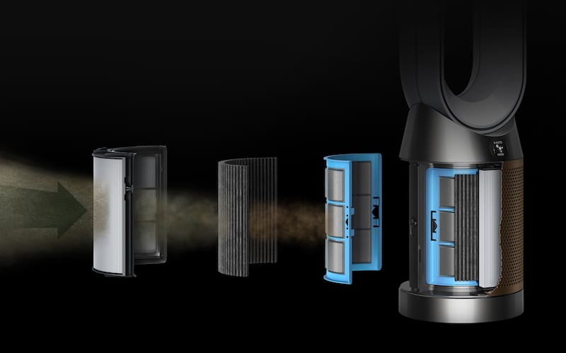 Dyson integró un sensor que no solo identifica estas moléculas, sino que las descompone en agua y mediante un filtro catalítico que no necesita ser reemplazado nunca. Se regenera solo.
