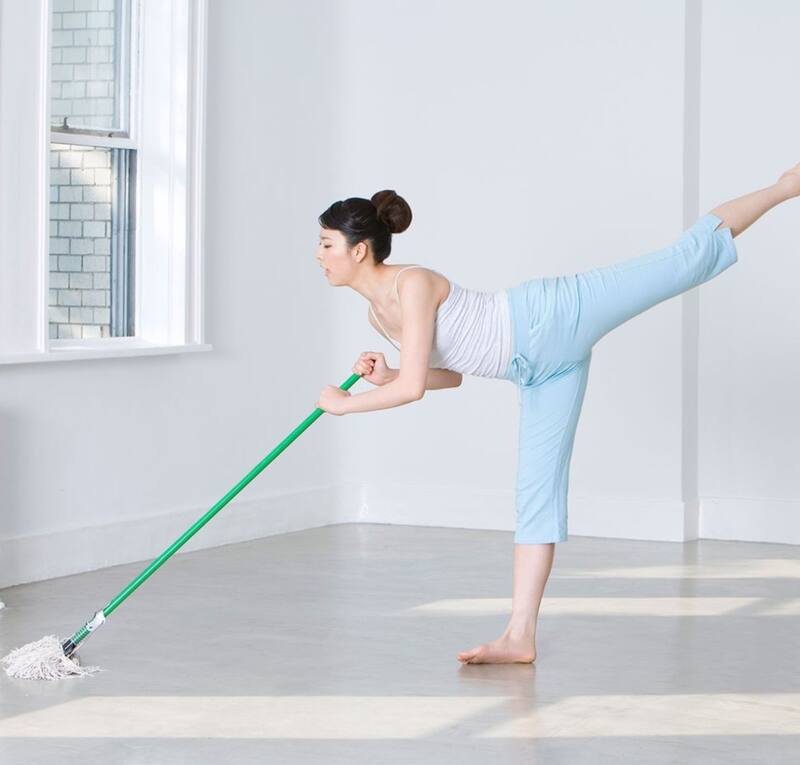 5. Cambiar de posiciones al usar la escoba, el trapero o la aspiradora