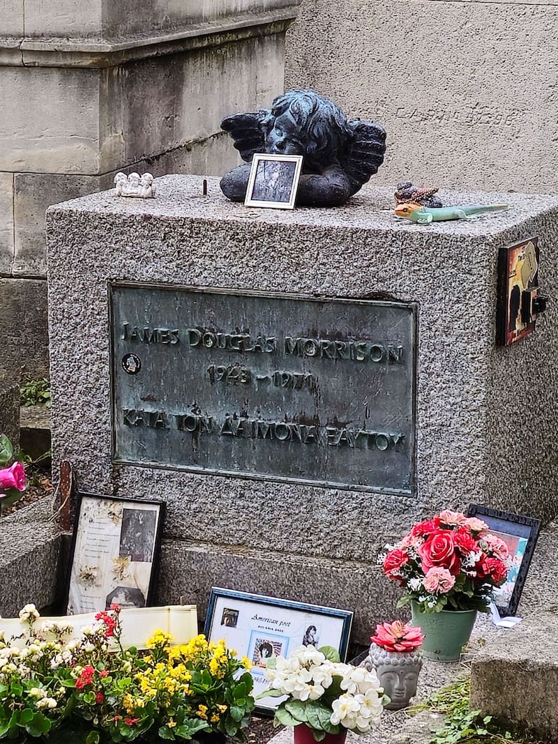 La tumba del cantante de The Doors, fallecido el 3 de julio de 1971, es un lugar de peregrinación para los nostálgicos del rock, tan numerosos que el camposanto ha tenido que colocar barreras.