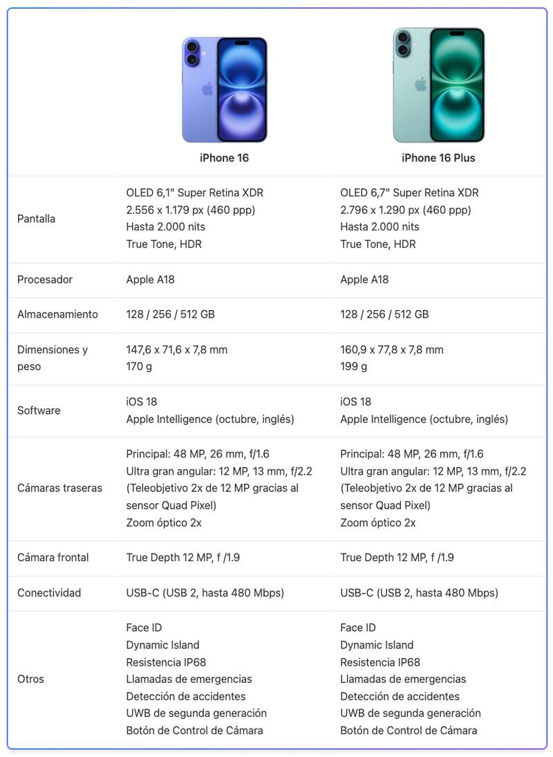 iPhone 16 y 16 Plus