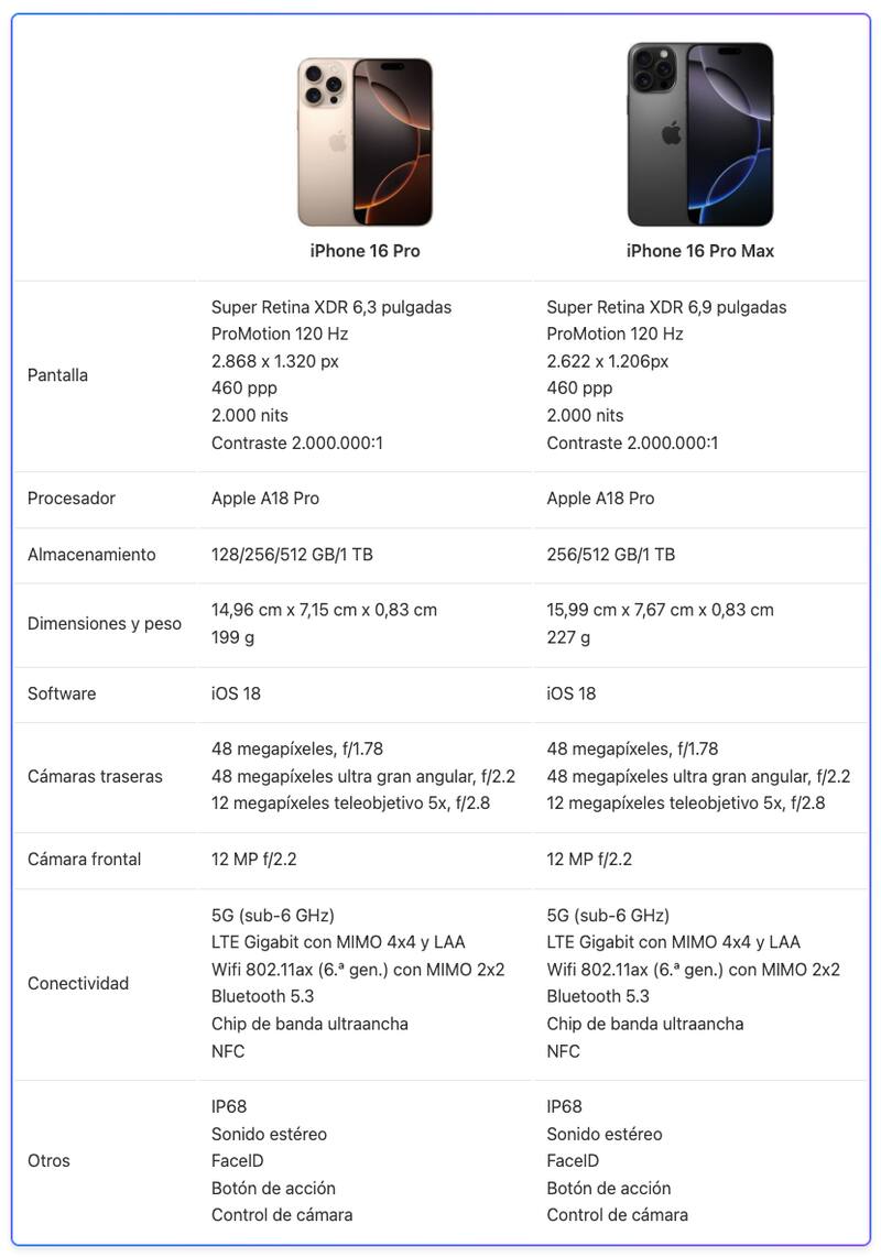 iPhone 16 Pro y Pro Max