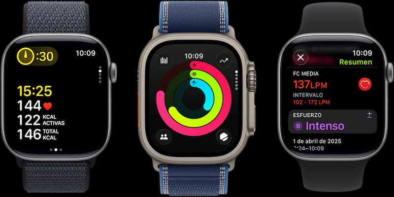 Pero el factor diferenciador de Apple siempre ha sido la integración. Si tienes un Apple Watch, las métricas aparecen en tiempo real en la pantalla de tu iPhone, iPad o Apple TV (frecuencia cardíaca, calorías, anillos de actividad).