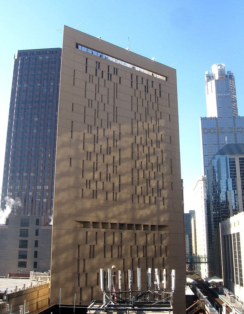 El Centro Correccional Metropolitano de Chicago es un imponente edificio triangular de hormigón. Tiene 28 pisos y fue diseñado por el arquitecto Harry Weese.