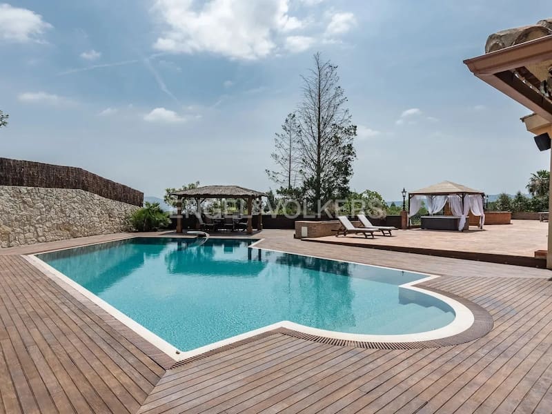 La propiedad tiene 8 dormitorios y 8 baños de altas terminaciones, además de otros espacios de recreación, relajo y entretenimiento. Tiene una piscina grande de varios metros de profundidad, distintos salones amplios, una amplia terraza, jacuzzi e incluso una discoteca privada en el sótano.