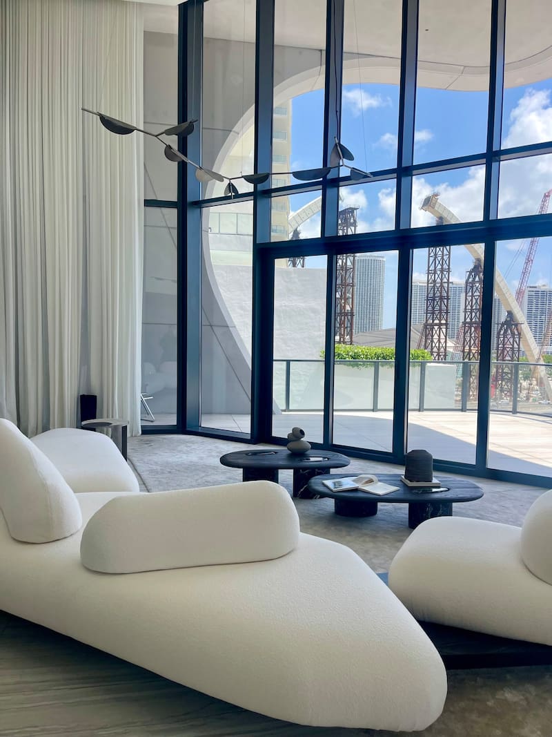 Ubicada en la exclusiva torre diseñada por la reconocida arquitecta Zaha Hadid, la residencia cuenta con ventanas de piso a techo que ofrecen vistas panorámicas desde la Bahía de Biscayne hasta el océano Atlántico.