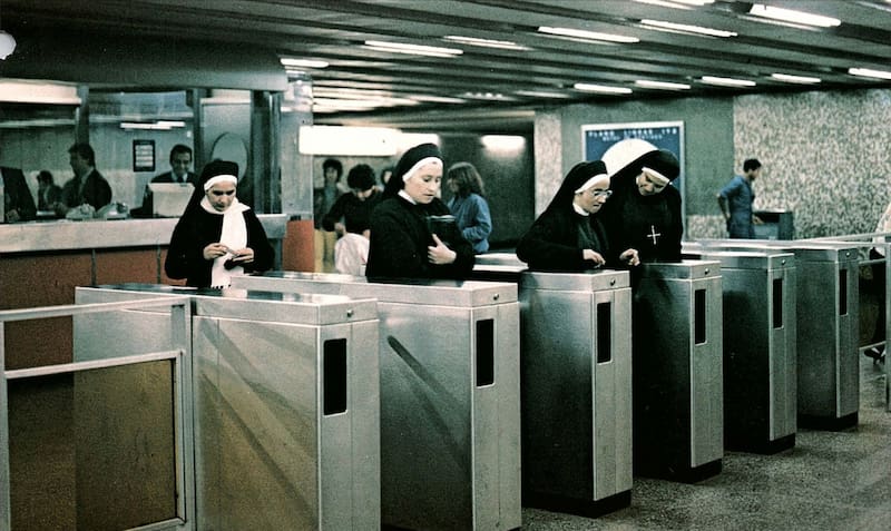 Aunque no se puede reconocer qué estación es, una curiosa fotografía aparece en el archivo: un grupo de monjas cruzando los torniquetes.