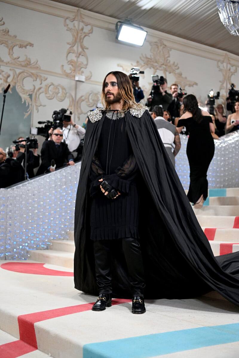 En la misma línea que la autora de “Kiss Me More”, Jared Leto llegó a la Met Gala con un disfraz de gato que rindió homenaje a Choupette, el famoso compañero de Lagerfeld.