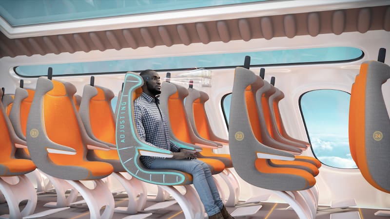 Cuando ya hayan llegado al terminal, los viajeros podrán optar por una nueva forma de entretenimiento: los dispositivos optoelectrónicos. Eso dejaría atrás las pantallas actuales y la necesidad de descargar a última hora música o películas. Asimismo, comenzarían a implementarse asientos ergonómicos y biomiméticos adecuados a la realidad de los cuerpos y temperaturas de los usuarios.