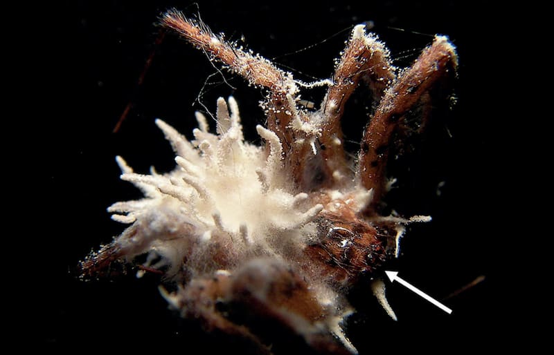 En cada una de las muestras analizadas por los investigadores, G. attenboroughii había invadido el cuerpo de una M. merianae y también de Meta menardi, más conocida como araña de cueva europea.