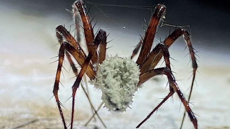 Según recoge Science Alert, los documentalistas estaban un almacén de pólvora del condado de Down, Irlanda del Norte, cuando encontraron que el hongo blanco y esponjoso cubría gran parte del cuerpo de una araña tejedora de orbes (Metellina merianae).