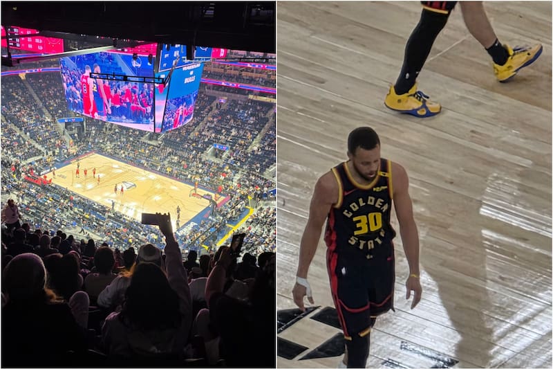 Acá, una prueba del zoom del Galaxy S25 Ultra en un partido de la NBA, captado por La Tercera desde el asiento más alto del Chase Center en San Francisco: