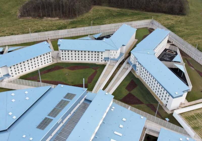 Según el Ministerio de Justicia de Francia, los arquitectos que diseñaron la cárcel “se esforzaron mucho en aportar luz exterior, dar sensación de volumen y ofrecer numerosos espacios verdes”.