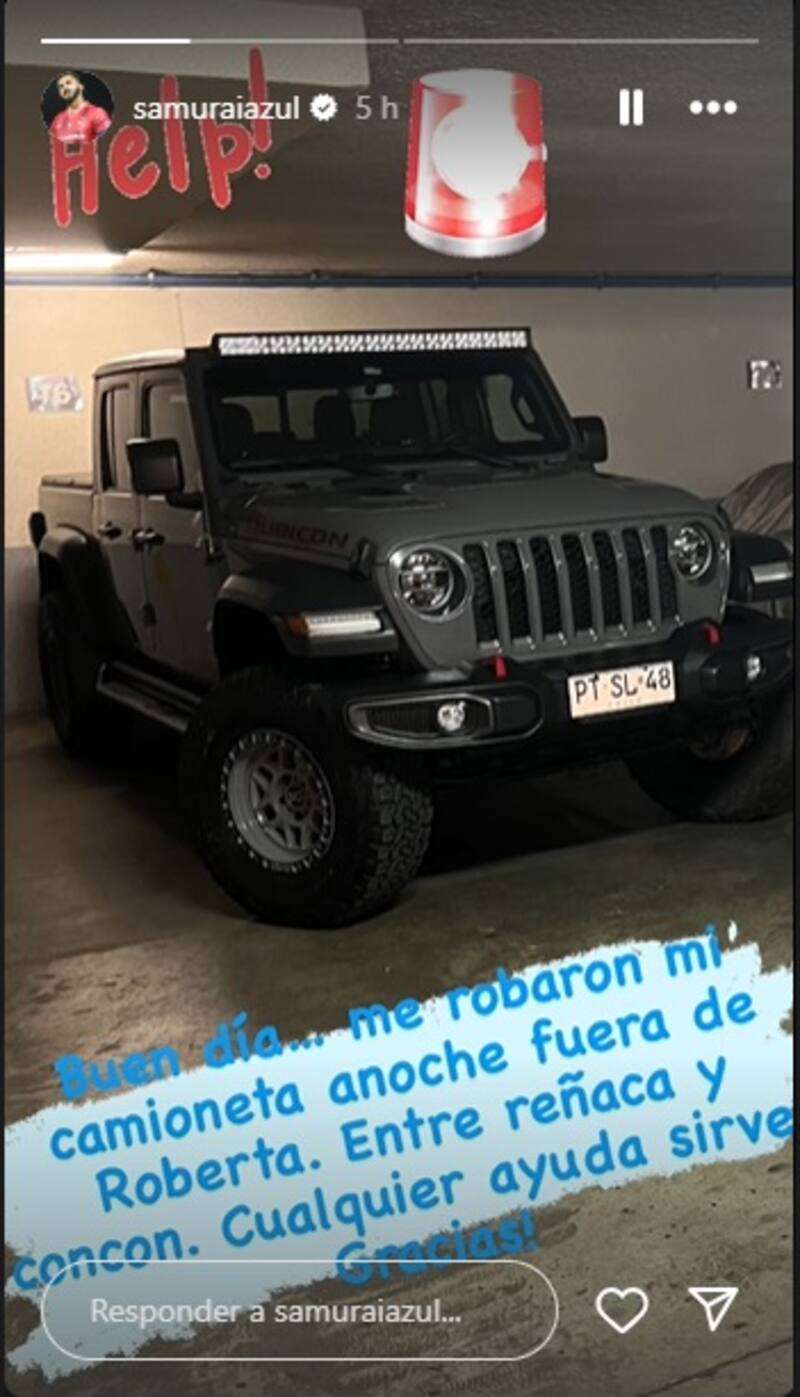 Fue el mismo futbolista quien alertó sobre el hecho a través de sus redes sociales. “Buen día. Anoche me robaron mi camioneta afuera de Roberta, entre Reñaca y Concón”, escribió el sábado. Minutos más tarde, en otra publicación, comentó que el vehículo había sido visto en el sector de Departamental, en la Región Metropolitana, a eso de las 2 de la mañana.