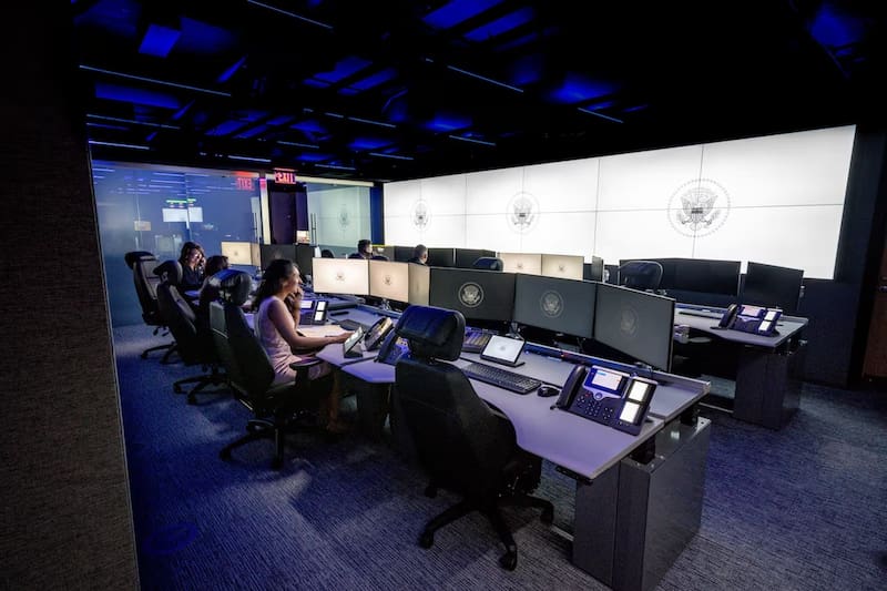 El nuevo complejo de 511 metros cuadrados incluye tres salas de conferencias de distintos tamaños; un centro de comando conocido como Watch Floor, donde analistas monitorean inteligencia global las 24 horas; y nuevas “salas de descanso” para que secretarios del gabinete puedan hacer llamadas seguras.