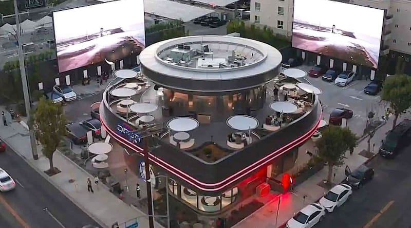 En 2018, Elon Musk anunció un proyecto que parecía salido de una película de ciencia ficción: un restaurante estilo americano, con cargadores para autos eléctricos y una pantalla gigante para ver películas mientras se come.