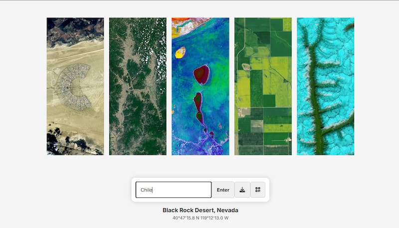 Pero no se trata solo de una experiencia estética: al hacer clic en cada letra, el sistema revela el origen exacto de la imagen, incluyendo el lugar del mundo y sus coordenadas geográficas.