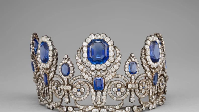 - Una tiara, un collar y un pendiente del conjunto de zafiros que perteneció a la reina María Amelia y a la reina Hortensia.