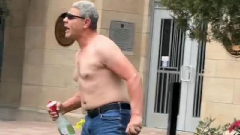 Imágenes captadas por medios estadounidenses muestran al presunto atacante a torso desnudo, mientras grita a otras personas y lleva lo que parecen ser dos botellas en sus manos.