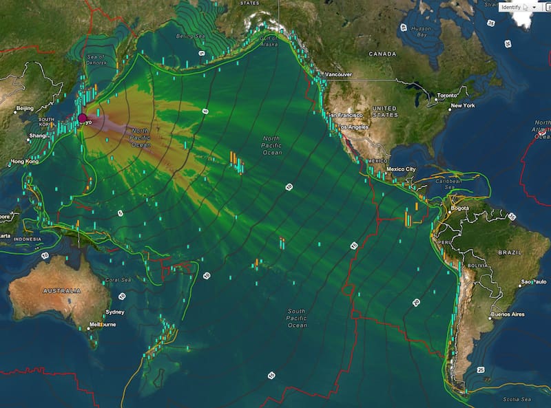 El tsunami que provocó el sismo de magnitud 9.1 fue observado en mareógrafos costeros de más de 25 países de la cuenca del océano Pacífico, en la Antártica e incluso en la costa occidental del océano Atlántico, en Brasil, según un reporte publicado por el NCEI, donde se recopilaron más de 6.200 mediciones de olas solo en la región del Pacífico.