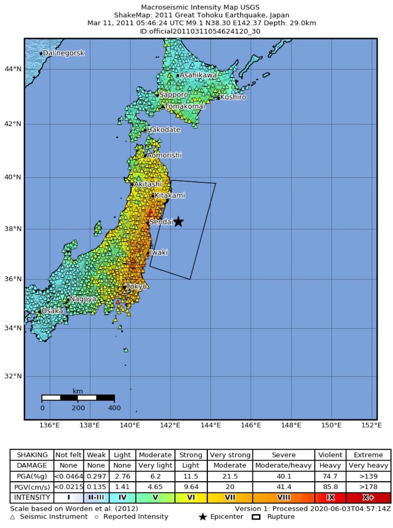 El sismo es conocido como el Gran Terremoto y Tsunami del Este de Japón, azotó a la costa noreste del país asiático y tuvo una magnitud de Mw = 9,1, según datos de los Centros Nacionales de Información Medioambiental (NCEI, por sus siglas en inglés) de Estados Unidos.
