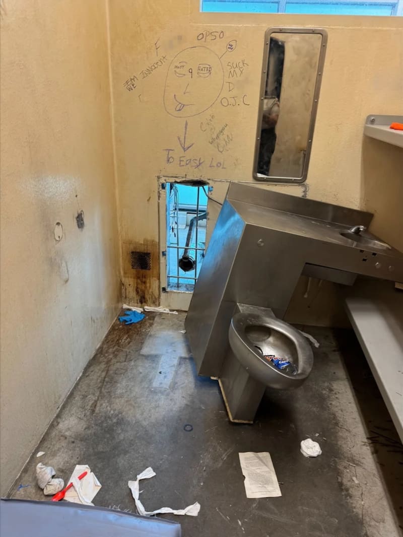 Detrás de ellos, dejaron artículos de aseo que utilizaron para retirar el inodoro y el lavabo, además de los pernos de la celda.