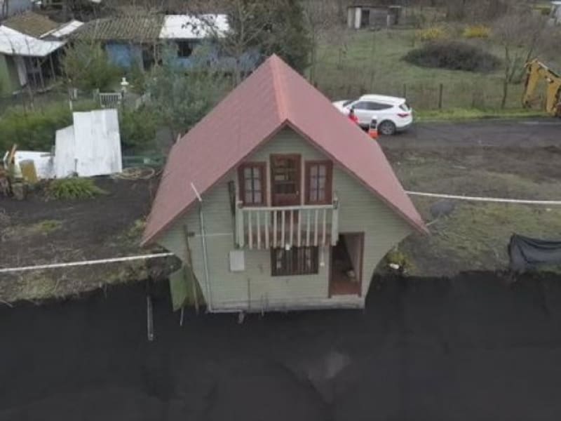 Lo que por la ventana antes era un río tranquilo, se convirtió en la peor pesadilla de una familia en la Región del Biobío. El fuerte temporal que se vivió la semana pasada hizo que el torrente en el estero se volviera violento y peligroso, provocando que una casa quedara colgando en la orilla, a punto de caer al río.