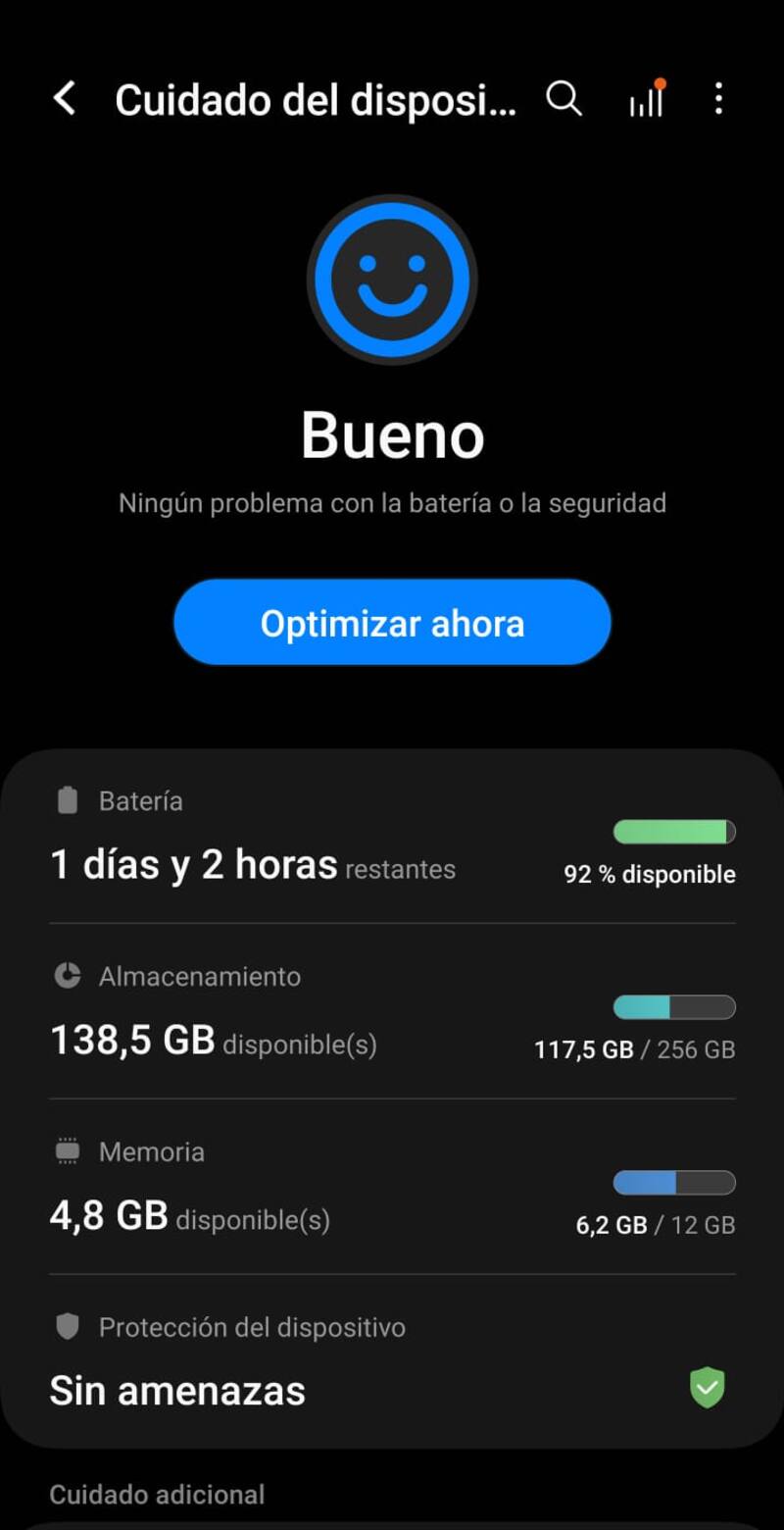 En esta opción se puede encontrar información sobre el rendimiento general del celular, además de otras alternativas, entre ellas la dedicada al diagnóstico del estado del dispositivo.