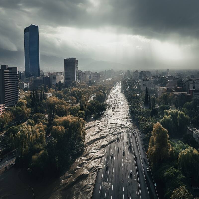 Cómo se vería Santiago inundado tras las fuertes lluvias, según la Inteligencia Artificial