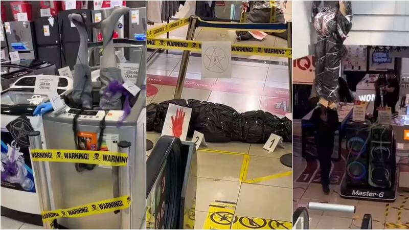 Simulando la presencia de “muertos” en sus pasillos, envueltos en bolsas para cadáveres, en un singular decorado con motivo de Halloween, la tienda del retail buscó llamar la atención de sus clientes y vaya que lo consiguió.