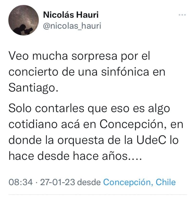 “Desde el punto de vista de la cultura, acá hay un sello importante, si consideramos además de la música, la riqueza muralística y arquitectónica de la ciudad, pese a los terremotos”, dice en referencia a los murales que posee —por ejemplo— un lugar como el edificio de la Universidad de Concepción.