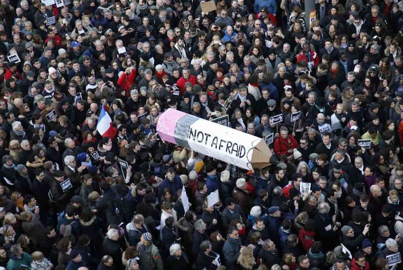 En paralelo, los franceses salieron a las calles para protestar por la libertad de expresión y solidarizarse con las víctimas del ataque terrorista y sus familias.