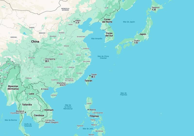 Al oeste se encuentra el Estrecho de Taiwán, una ruta que es clave tanto para el comercio local como internacional.