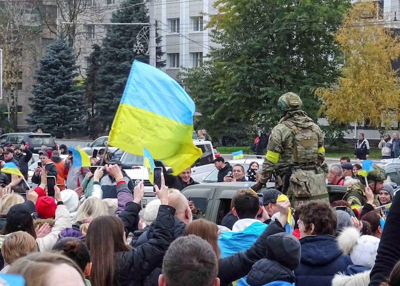 Cuando las tropas de Rusia se retiraron de la ciudad de Kherson, en Ucrania, decenas de miles de sus habitantes salieron a celebrar en la plaza central.